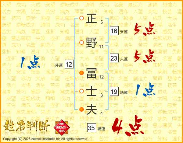 正野冨士夫さんの人運は23画の5点!