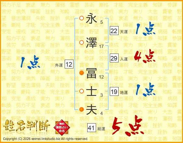 永澤冨士夫さんの総運は41画の5点!