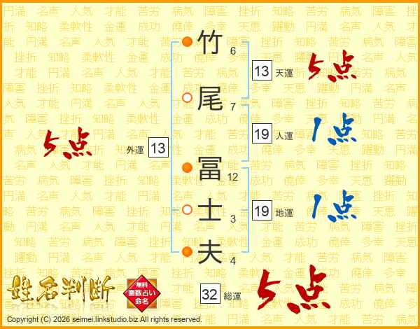 竹尾冨士夫さんの総運は32画の5点!
