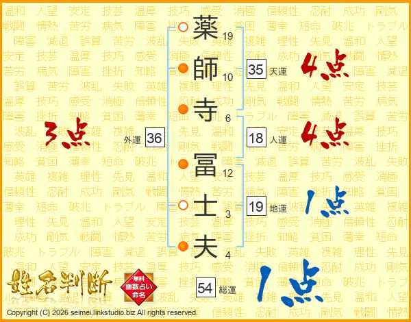 薬師寺冨士夫さんの総運は54画の1点!