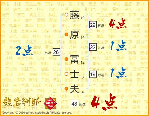 藤原冨士夫さんの総運は48画の4点!