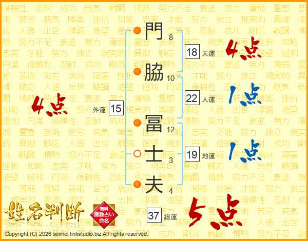 門脇冨士夫さんの総運は37画の5点!