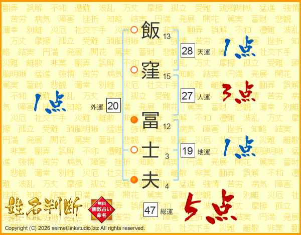 飯(13画)窪(15画) 冨(12画)士(3画)夫(4画)