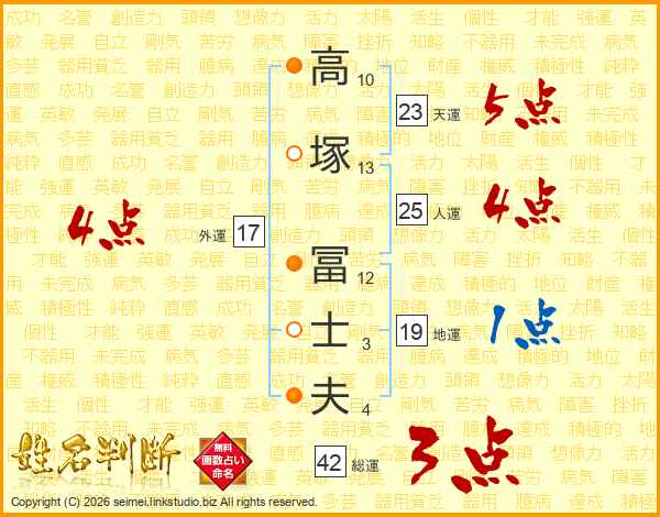 高(10画)塚(13画) 冨(12画)士(3画)夫(4画)