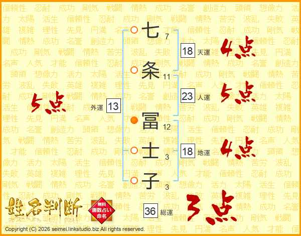 七条冨士子さんの総運は36画の3点!
