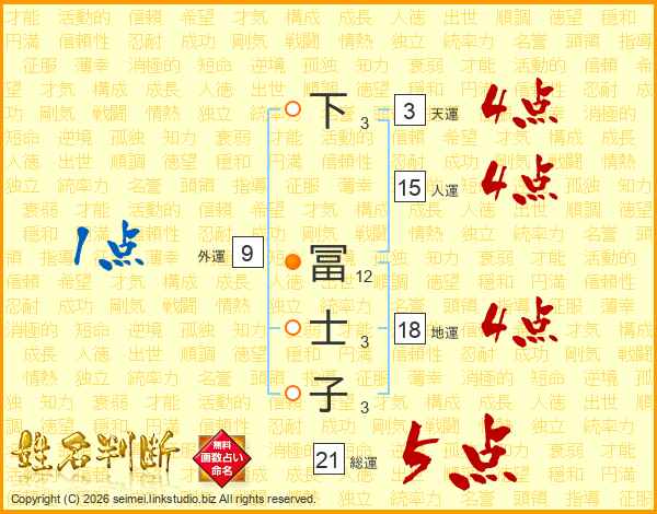下冨士子さんの人運は15画の4点!