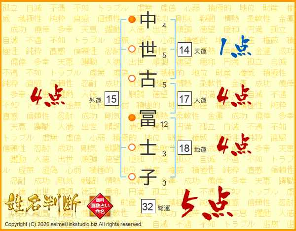 中世古冨士子さんの総運は32画の5点!