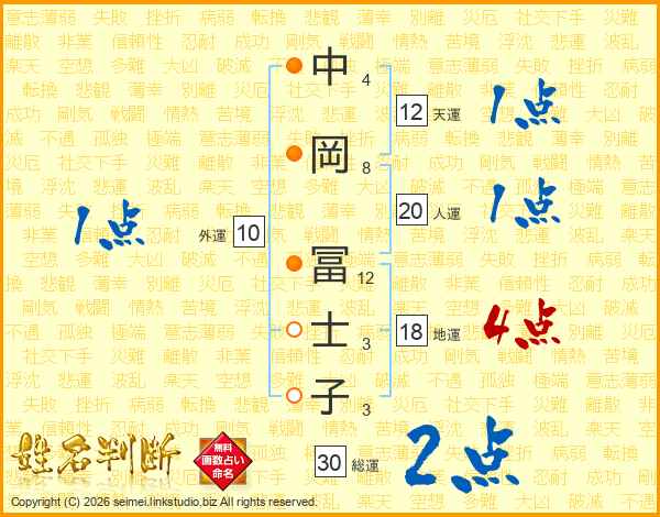 中岡冨士子さんの総運は30画の2点!