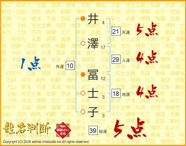井澤冨士子さんの総運は39画の5点!
