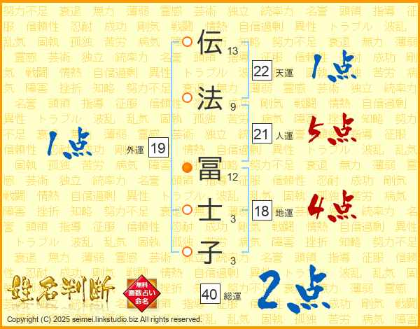 伝(13画)法(9画) 冨(12画)士(3画)子(3画)