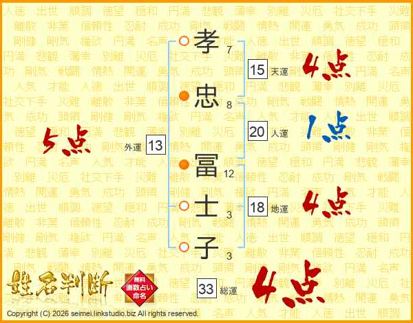 孝忠冨士子さんの総運は33画の4点!