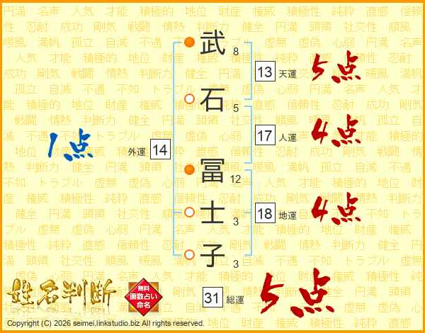 武(8画)石(5画) 冨(12画)士(3画)子(3画)