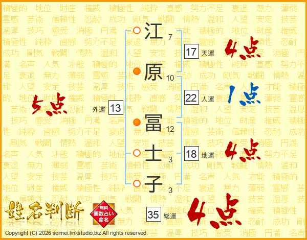 江原冨士子さんの総運は35画の4点!