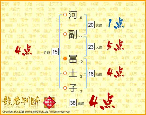 河(9画)副(11画) 冨(12画)士(3画)子(3画)