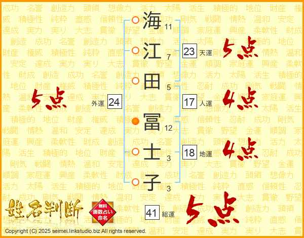 海(11画)江(7画)田(5画) 冨(12画)士(3画)子(3画)