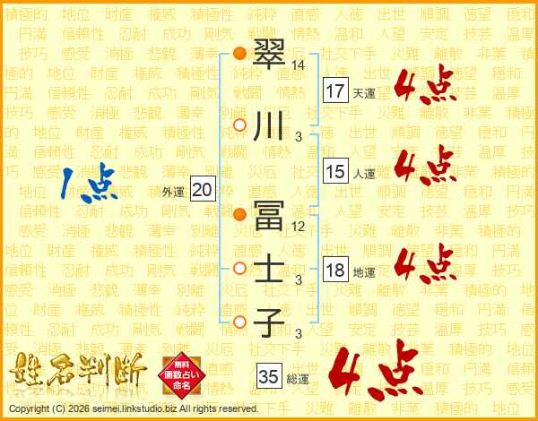 翠(14画)川(3画) 冨(12画)士(3画)子(3画)
