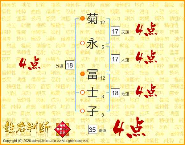 菊(12画)永(5画) 冨(12画)士(3画)子(3画)