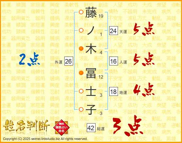 藤ノ木冨士子さんの天運は24画の5点!