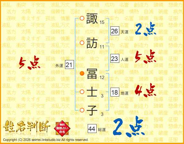 諏訪冨士子さんの外運は21画の5点!