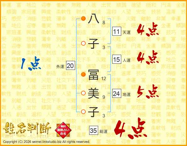 八(8画)子(3画) 冨(12画)美(9画)子(3画)