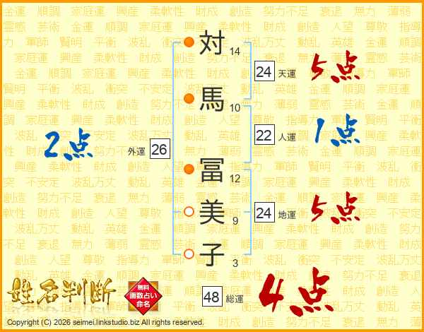 対馬冨美子さんの総運は48画の4点!