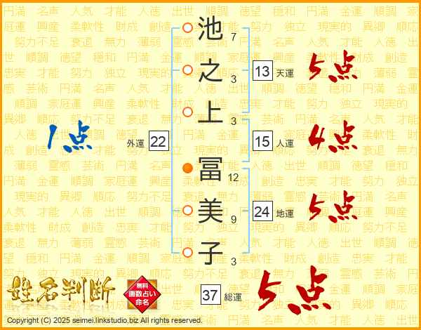 池之上冨美子さんの総運は37画の5点!