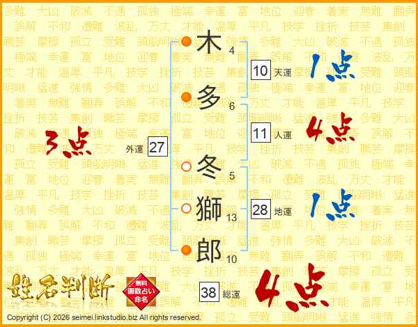 木多冬獅郎さんの総運は38画の4点!