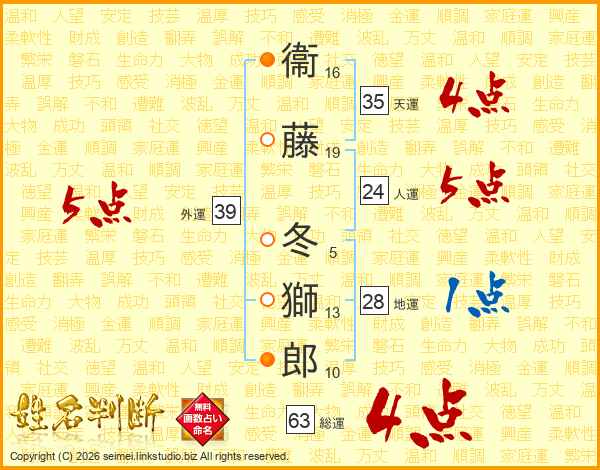 衞藤冬獅郎さんの外運は39画の5点!
