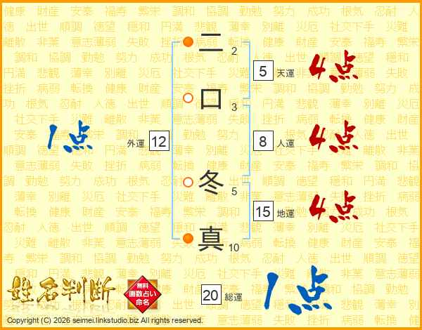 二口冬真さんの総運は20画の1点!