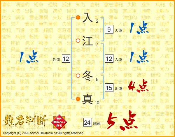 入江冬真さんの総運は24画の5点!