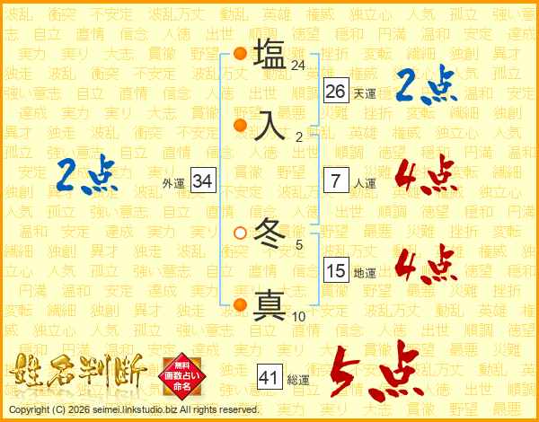塩入冬真さんの総運は41画の5点!