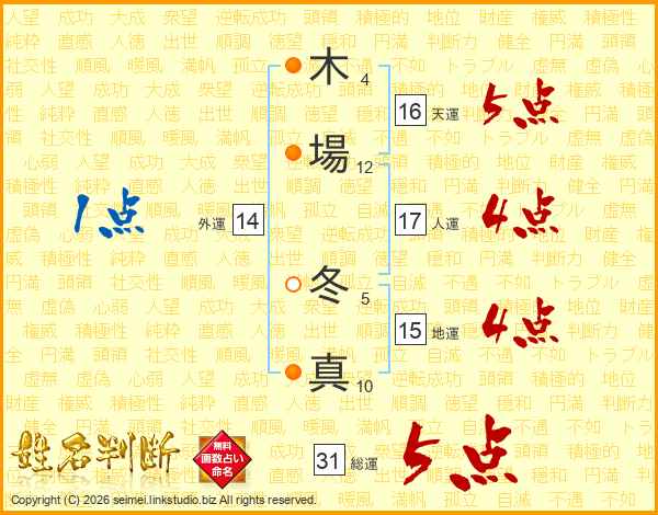 木場冬真さんの総運は31画の5点!