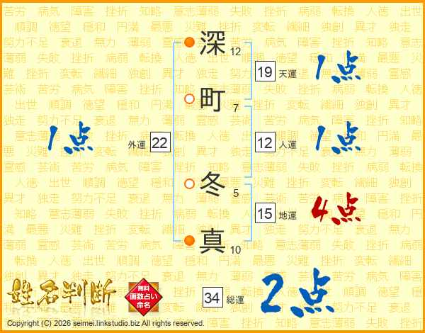 深町冬真さんの総運は34画の2点!
