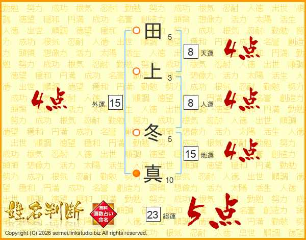 田上冬真さんの総運は23画の5点!