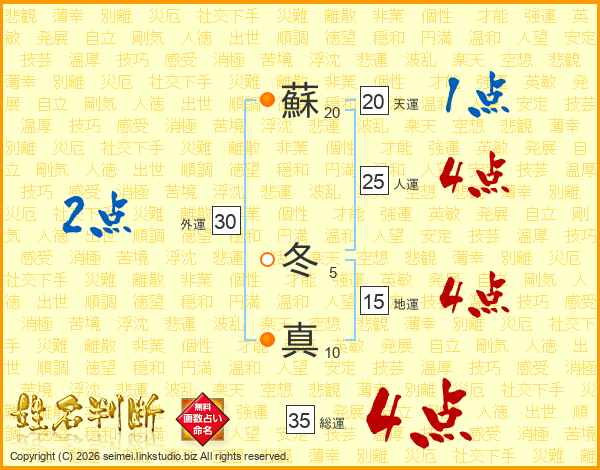 蘇冬真さんの総運は35画の4点!