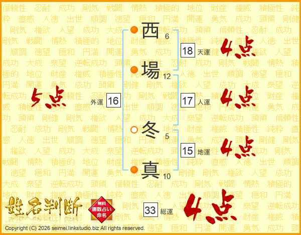 西場冬真さんの総運は33画の4点!