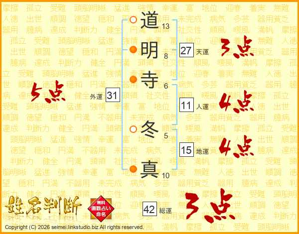 道明寺冬真さんの外運は31画の5点!