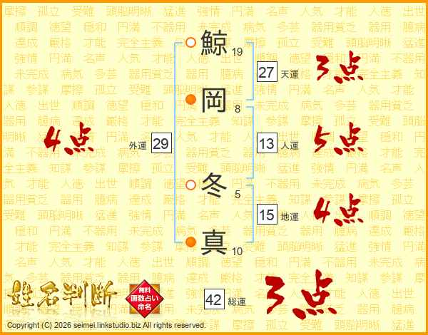 鯨岡冬真さんの総運は42画の3点!