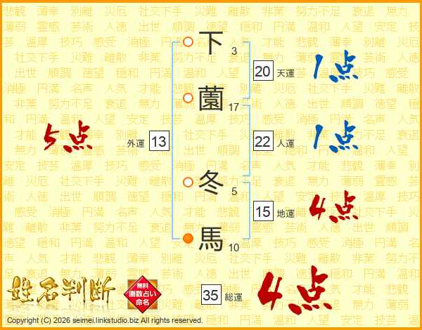 下薗冬馬さんの総運は35画の4点!