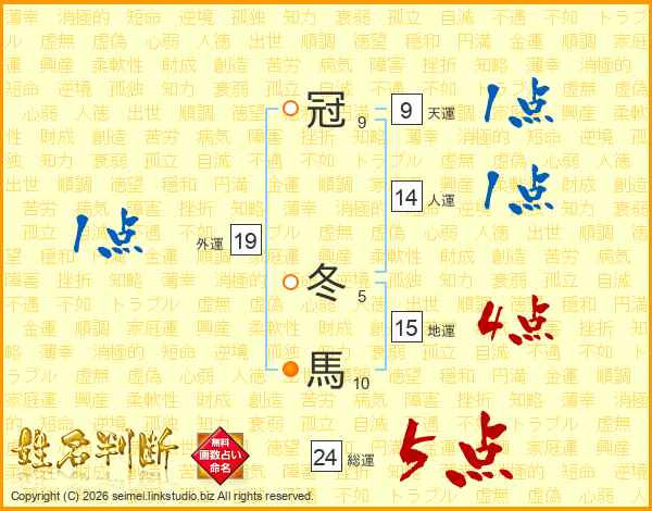 冠冬馬さんの総運は24画の5点!