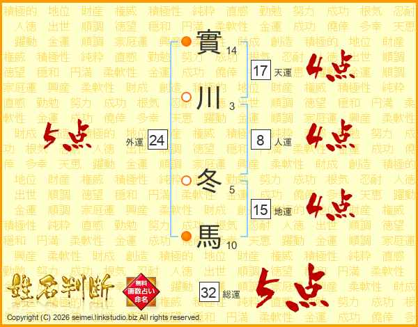 實川冬馬さんの総運は32画の5点!