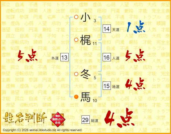小梶冬馬さんの総運は29画の4点!
