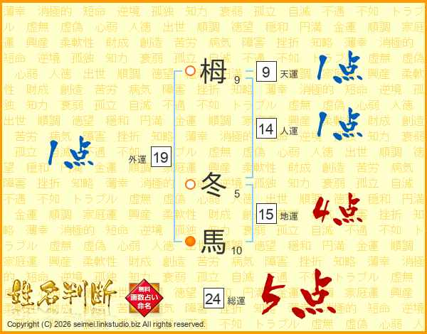 栂冬馬さんの総運は24画の5点!