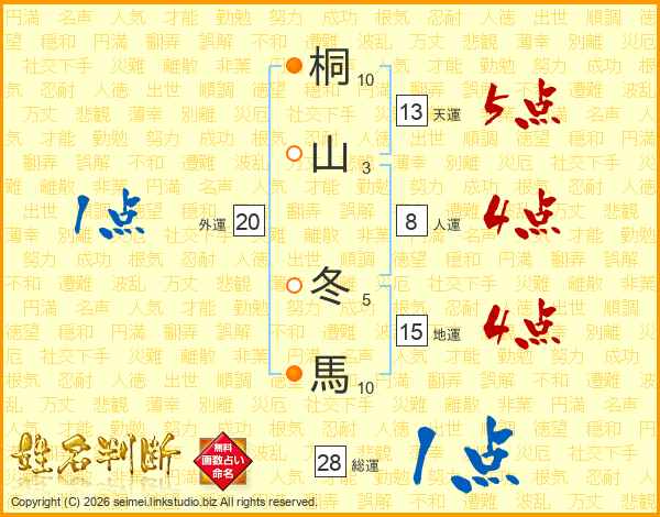 桐山冬馬さんの天運は13画の5点!