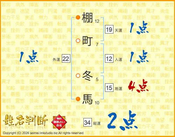 棚町冬馬さんの総運は34画の2点!