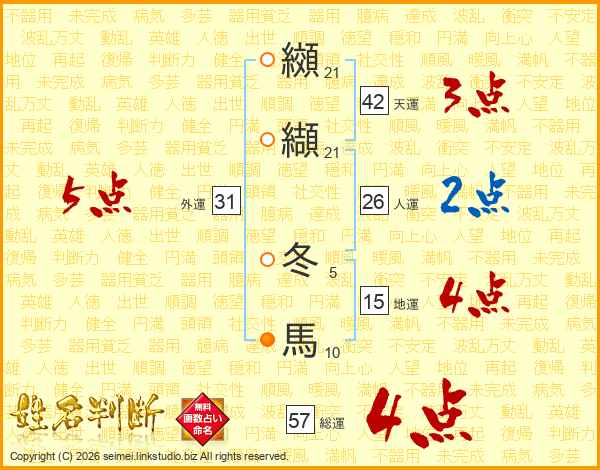 纐纈冬馬さんの人運は26画の2点!