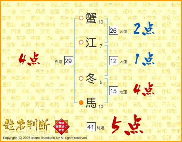 蟹(19画)江(7画) 冬(5画)馬(10画)