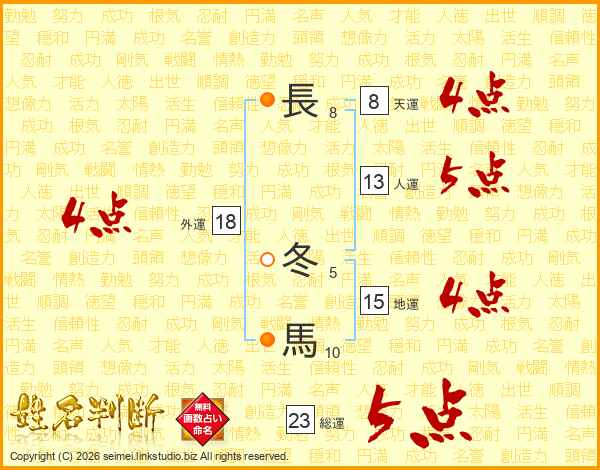 長冬馬さんの総運は23画の5点!
