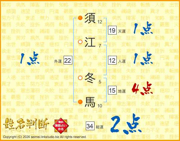 須江冬馬さんの総運は34画の2点!