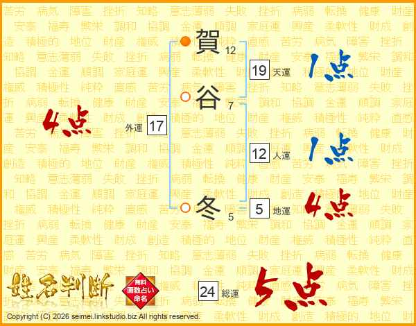 賀谷冬さんの総運は24画の5点!